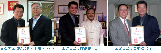 品保協會第7屆第2次理監事會議通過邀聘台北市旅行商業同業公會前理事長陳信豪先生為會務顧問總召集人,並聘請全聯會創會名譽理事長曾盛海、全聯會監事主席張玉林擔任榮譽顧問,希望參考各顧問專業資深的經歷為智庫,借重其豐富的經驗協助品保會務更為精進發展,為會員旅行社圖謀更寬闊之願景。品保協會理事長林進榮更是親赴各顧問的公司致贈聘書,表達誠摯之意。
