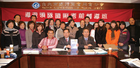 由北市公會舉辦的97年度導遊、領隊證照考前輔導班於日前正式開課,教育訓練委員會召集人彭培興表示,此次報名狀況相當踴躍,計有22位同業報名參與全程課程,另有12位同業僅報名特定單堂課程。該課程是為協助業者報考導遊、領隊證照而設,邀請資深從業人員擔任講師,彭培興指出,未來公會陸續開辦類似教育訓練課程,有興趣者可儘早報名,以免錯失增進職技與專業知識之良機。
