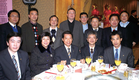 ▲(前排左起)中華航空台北分公司客運營業部經理賴祥光、香港旅遊發展局台灣處長黃莉惠、中華航空台灣區處長兼台北分公司總經理陳明堂、總會副理事長許禓哲、長榮航空客運本部營業部副理林南陽;(後排左起)中華航空台北分公司客運營業部副理呂若阜、泰國線主任徐台金、海基會科長黃國瑞、旅行公會總會大陸委員會召集人王扶搖、旅奇雙週刊社長何昭璋、天海旅行社董事長曾盛鈺、泰國航空業務經理沈心善、雄獅旅行社總經理劉文義。