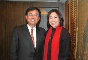 ▲領隊協會理事長蕭志洋(左)與雄獅旅行社董事長凌瓏合影。