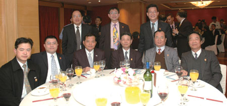現場貴賓校友雲集,場面十分盛大。(前排左起)東北角暨宜蘭海岸國家風景區管理處秘書楊永盛、本屆校友聯誼會秘書長楊先煇、大登旅行社總經理林博宗、昇漢旅行社總經理陳錦森、旅館經理人協會理事長蘇乾亮、南投縣政府觀光局局局長洪文能;(後排左起)新進旅行社總經理方世宗、立安旅行社副總經理謝世宗、世邦旅行社總經理顏正豐。