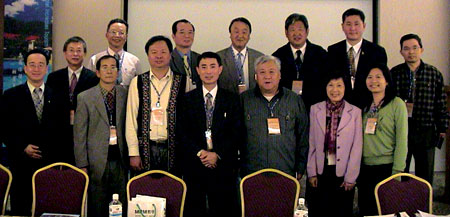 ▲南投縣縣長李朝卿(左)與北市公會副理事長丁萊相見歡。旅行公會總會國內旅遊委員會日前舉辦2008南投觀光產業暨國內旅遊委員會論壇,假南投日月潭晶園度假村會議室舉行。此次會議係旅行總會首次與公部門合作共同召開,不僅交通部觀光局業務組副組長周世安、南投縣縣長李朝卿,以及旅行公會總會副理事長黃瑞榮、北市公會副理事長丁萊皆於百忙之中撥冗參加,亦吸引國旅業者與南投地方觀光產業業者近百人出席,更邀請交通部觀光局業務組周世安副組長全程與會指導!