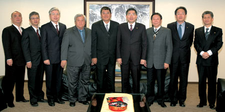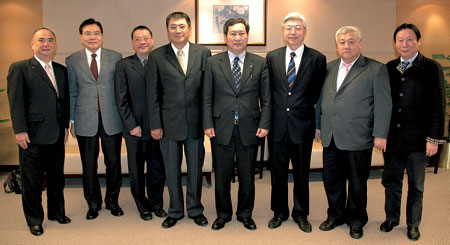 ▲公會總會理事長姚大光(左4)帶領其他成員拜會華航董事長趙國帥(右4)。