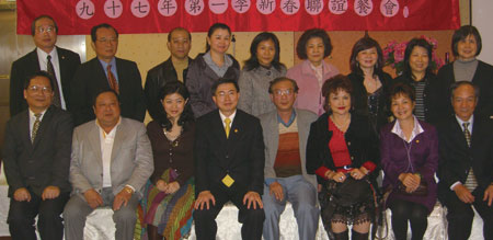 台北市旅館商業同業公會舉行聯誼餐會,理事長徐銀樹(前排左4)、秘書長何忠錦(前排左1)率理監事與參與貴賓—台北市政府觀光傳播局股長黃修全(前排左5)、旅館經理人協會理事長蘇乾亮(後排左2)合影。