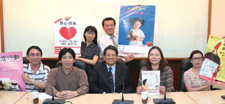 品保協會熱情邀請旅遊同業參與4/22捐血活動,(前排左起)文康教育委員會委員謝世宗╱主任委員夏景苹、公關宣傳委員會主任委員孫明台、文康教育委員會委員吳碧蓮╱江麗珠;(後排左起)文康教育委員會委員吳佳怡╱張遠明。