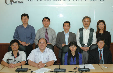 ▲(前排左起)品保協會網際網路委員會委員葉正吉/呂威德、主任委員吳佳怡、先啟資訊業務部管理系統組副理葉文忠。