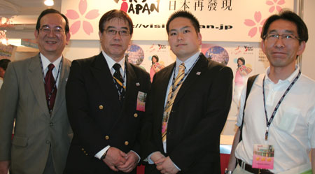 ▲(左起)日本觀光協會台灣事務所所長井久保敏信、常務理事江田猛、事業推進部國際事務組旅展事務局兼任村上旭、歧阜縣觀光聯盟擔當課長深谷安昭。