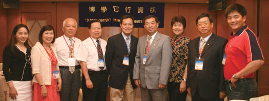 ▲群英會會長鄭金城(左6)於5月例會邀請台北縣政府機要顧問劉忠繼(左5)分享「多元文化.多元價值.多元生涯」主題,與會同學們皆熱情聆聽。