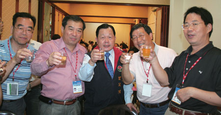 (左起)群英會國旅考察總指揮彭培興、會長鄭金城、苗栗縣縣長劉政鴻、群英會副會長陳善國、前前會長林正義。