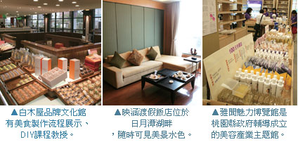 在2天1夜的行程裡,位於桃園縣的白木屋品牌文化館與雅聞魅力博覽館都是台灣優質企業品牌所開發的景點,其中白木屋品牌文化館7月底將正式開放,現場除了觀覽糕點、巧克力與各項美食的製作過程,也可從迴廊精心設計的擺設中,了解白木屋產品與歷史延革的紀錄,現場區分為展示區、簡報區、伴手禮區、DIY體驗區、室外咖啡區等,即將推出的蛋糕製作課程,每人僅需200元材料費,想必會是超高人氣的課程之一。