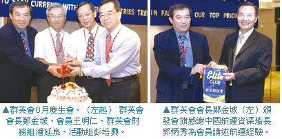 群英會8月例會選在國賓飯店舉辦,並邀請中國航運資深船長郭炳秀為同業講授數十年的行船經驗,同時也為8月壽星舉辦慶生會。