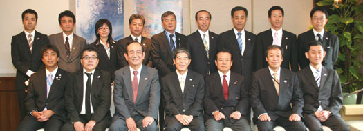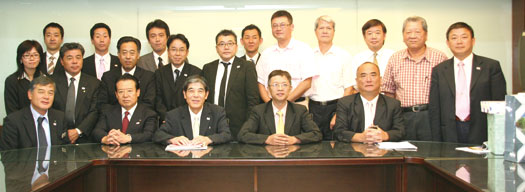 ▲ (前排左起)社團法人松本青年會議所理事長田多井健介、株式會社明神館代表取締役社長齊藤茂行、日本觀光協會台灣事務所所長井久保敏信、松本市長菅谷昭、松本商工會議所會頭井上保、松本市議會議員增田博志、松本淺間溫泉井筒專務取締役木下豊;(後排左起)松本市商工觀光部觀光溫泉課主查忠地智司、松本市商工觀光部觀光溫泉課觀光擔當係長小原直樹、City Travel Service代表取締役陳乃華、松本市秘書課課長?牧隆、松本商工會議所業務部長宮下文雄、Hotel New Station代表取締役小林磨史、上高地白樺莊營業部長?田賢一、松本市商工觀光部觀光溫泉課長小笠原貞純、東洋觀光事業株式會社營業部統括支配人關口清。