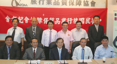 ▲ 品保協會本季參考價格釋出,各線本因燃油稅高漲而多半調漲的團費,在本季有了下修的空間,圖為講者於記者會中合影。