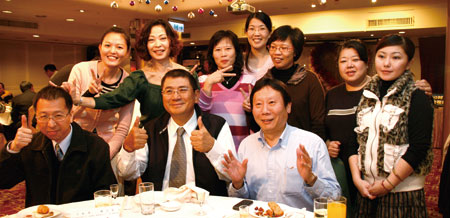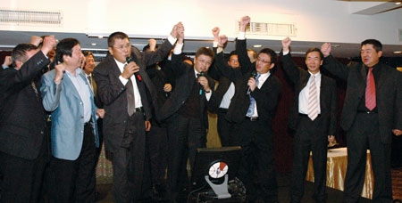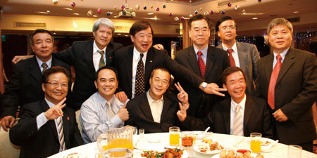 ▲ 台北市旅行商業同業公會理事長副理事長許禓哲(前排左4)宣示參選下一屆「理事長」,理事長姚大光及理監事們齊呼「當蒜!當蒜!」。