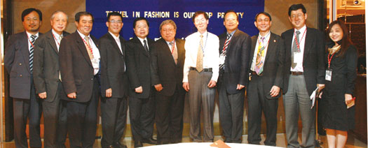 ▲ (左起)世群總經理林嘉賢、福泰董事長王振政、中國航運經理鄭金城、《旅奇雙週刊》社長何昭璋、鳳凰董事長張金明、群英會會長張純青、台北攝影學會理事長連世仁、上順總經理李南山、浦東副總經理謝世宗、行家副董事長白中仁、富邦經理吳毓玲。