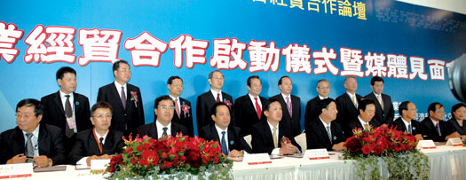 桂台經貿合作論壇首度移師台北舉辦,開幕當天雙方代表簽署8項合作備忘錄,深化交流。已連續四屆在廣西舉辦的「桂台經貿合作論壇」首次移師台北,此次由廣西壯族自治區主席馬率領廣西各有關部門及所有地級市主要官員出席,將近1,500人的龐大陣容,首先引起關注,並且計畫來台採購產品總金額約1.7億美元,更受到高度重視。在5月22日開幕當天,廣西經貿文化代表團與工業總會等7個工商協會簽署桂台工業、農業、經貿、沿海合作發展、旅遊、文化、中醫藥等領域的8項交流合作備忘錄。其中,旅遊領域由廣西壯族自治區旅遊局局長陳建軍與台北市旅行商業同業公會理事長許禓哲共同簽署。