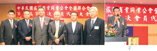 1. 旅行公會總會第三屆第三次會員代表大會。(左起)品保協會理事長林進榮、海基會旅遊服務處長劉克鑫、旅行公會總會理事長姚大光、觀光局主任秘書吳朝彥、旅行公會總會創會榮譽理事長曾盛海、旅行公會總會監事主席張玉林。