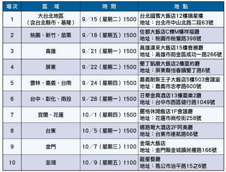 此次研討會,協會將邀請全台接待陸客之飯店、旅館及民宿業者與旅行社業者,分區辦理研討會,雙方研討如何接待陸客暨提昇住宿品質,包括訂房及住宿須知、了解陸客生活習慣及飲食習慣等接待須知,相望藉此讓飯店、旅館及民宿業者更了解旅行社接待陸客的操作模式,讓接待陸客的旅行社對全台飯店、旅館及民宿更了解,提昇雙方服務品質,招攬更多陸客來台觀光,促進觀光發展。有意參加的同業,請於9╱14前傳真出席人員資料至(02)2506-5421吳美惠副秘書長。報名表請上www.travel.org.tw網站下載。