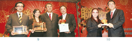 9.尾牙晚宴上,由旅行公會總會理事長姚大光頒發獎座給去年業務表現最優異的旅行社。