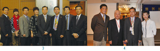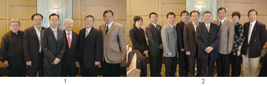 1.(左3起)群英會第19屆會長彭培興、創會會長施啟盛、第20屆會長朱祺雨與(左起)歷屆會長—廣德旅行社董事長張純青、永業旅行社董事長吳勛豐、大登旅行社董事長林博宗合影。