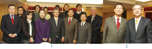 1.台北市旅行商業同業公會理事長許禓哲(前排右3)與Antor聯誼會會長施春庭(前排右2),和An t or聯誼會會員於餐會上合影。(前排左2起)香港旅遊發展局台灣處長徐維妮、美國蒙大拿州政府亞太區辦事處代表王美美、賽班駐台灣辦事處代表宋仁、美國阿拉斯加州台灣代表處代表取靄文,以及台北市旅行商業同業公會副理市長丁萊(後排左2)、泰國觀光局台北辦事處代表黃俐平(後排左3)、菲律賓觀光部台灣分處處掌雷亞司(後排右2)。2.台北市旅行商業同業公會理事長許禓哲(右)與Antor聯誼會會長施春庭。