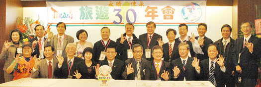 由國內資深旅遊業者發起、籌備多年的「旅遊30年會」,於3╱30在台北市中源飯店舉行成立大會,邀請交通部觀光局、北市府觀傳局、公會、Antor等單位貴賓蒞臨。「旅遊30年會」集結一群在旅行業已有30 年資歷的資深業者,發起目的在於匯集資深同業群體力量,做為旅遊業智庫,建構經驗傳承與交流平台,目前已有數十家業界前輩菁英為會員,歡迎在旅行業工作資歷30年以上者共襄盛舉。