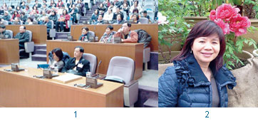 1.中華餐旅經理人協會於南投縣參訪會議現場。2.中華餐旅經理人協會副理事長暨「公關組」總召集人周水美與盛開牡丹花合影。